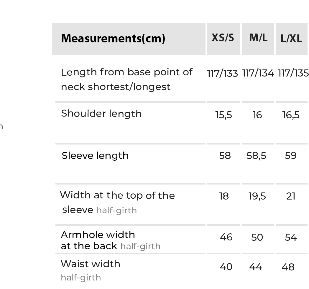 The model has a neat rounded neckline, long sleeves and exquisite drapery with a slight twist in the front, which forms the waistline, a slight flared bottom gives the dress mobility and soft volume.