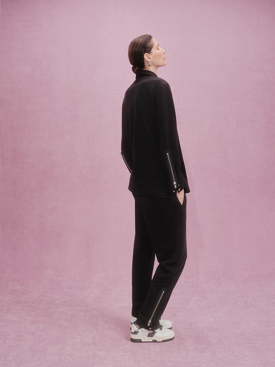 A pleasant to the body and comfortable cotton model with patch pockets at the back.