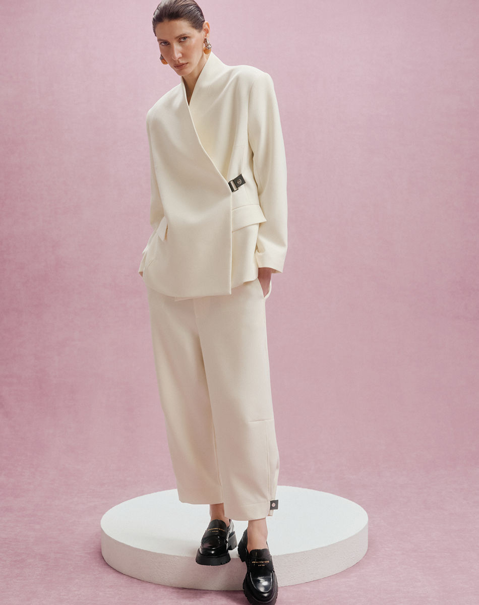 Trousers are ideally combined with a jacket made of stretch fabric.