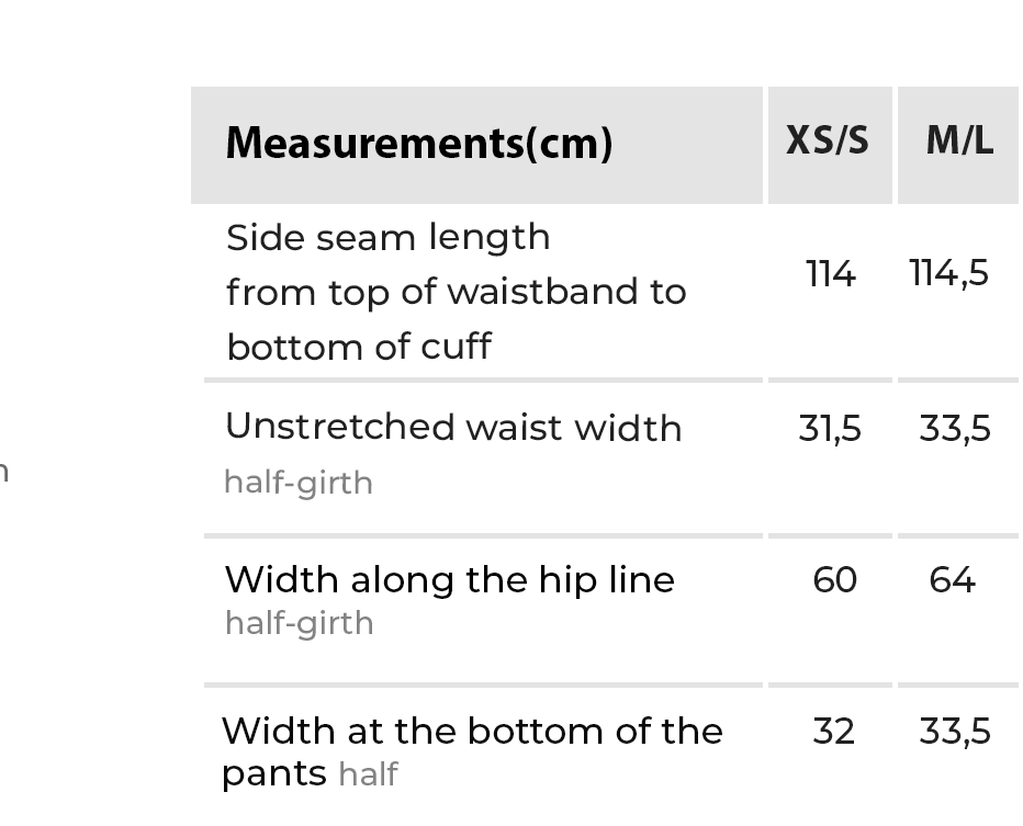 The waistband of the product is elasticated with a drawstring, allowing you to choose a comfortable fit.