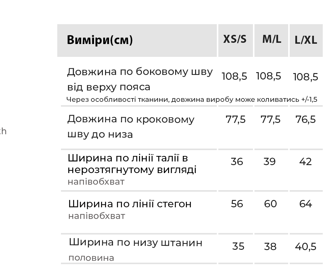 Таблиця розмірів