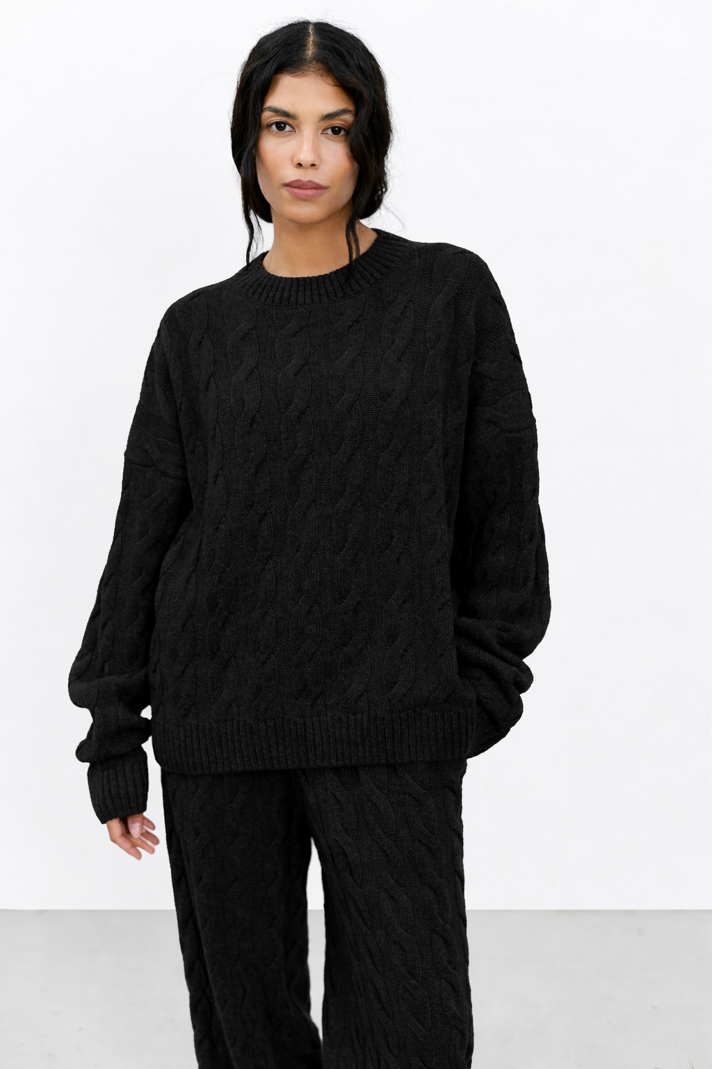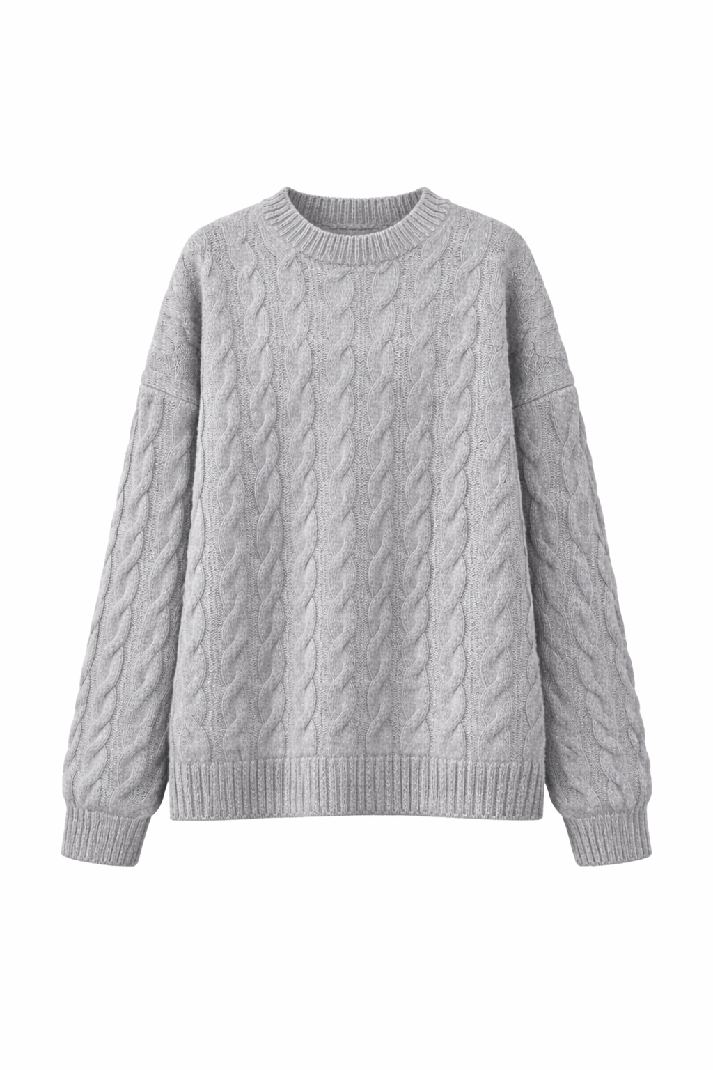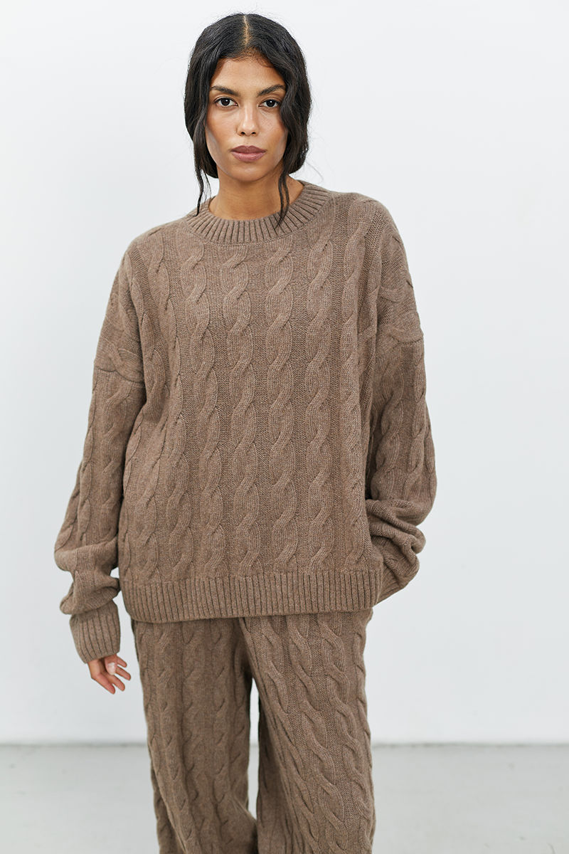 Светр поєднав у собі цікаву в’язку з візерунком коси, актуальний крій, зручність та практичність.