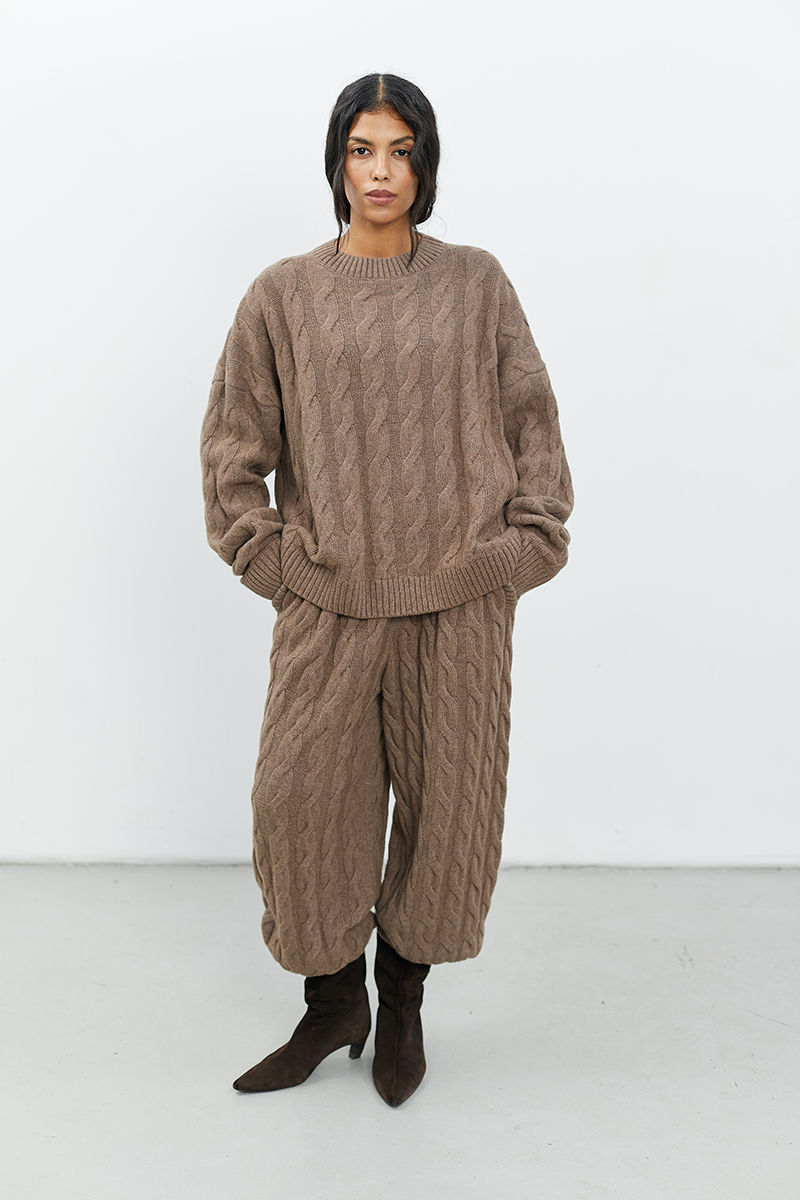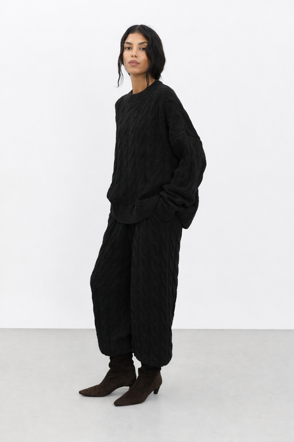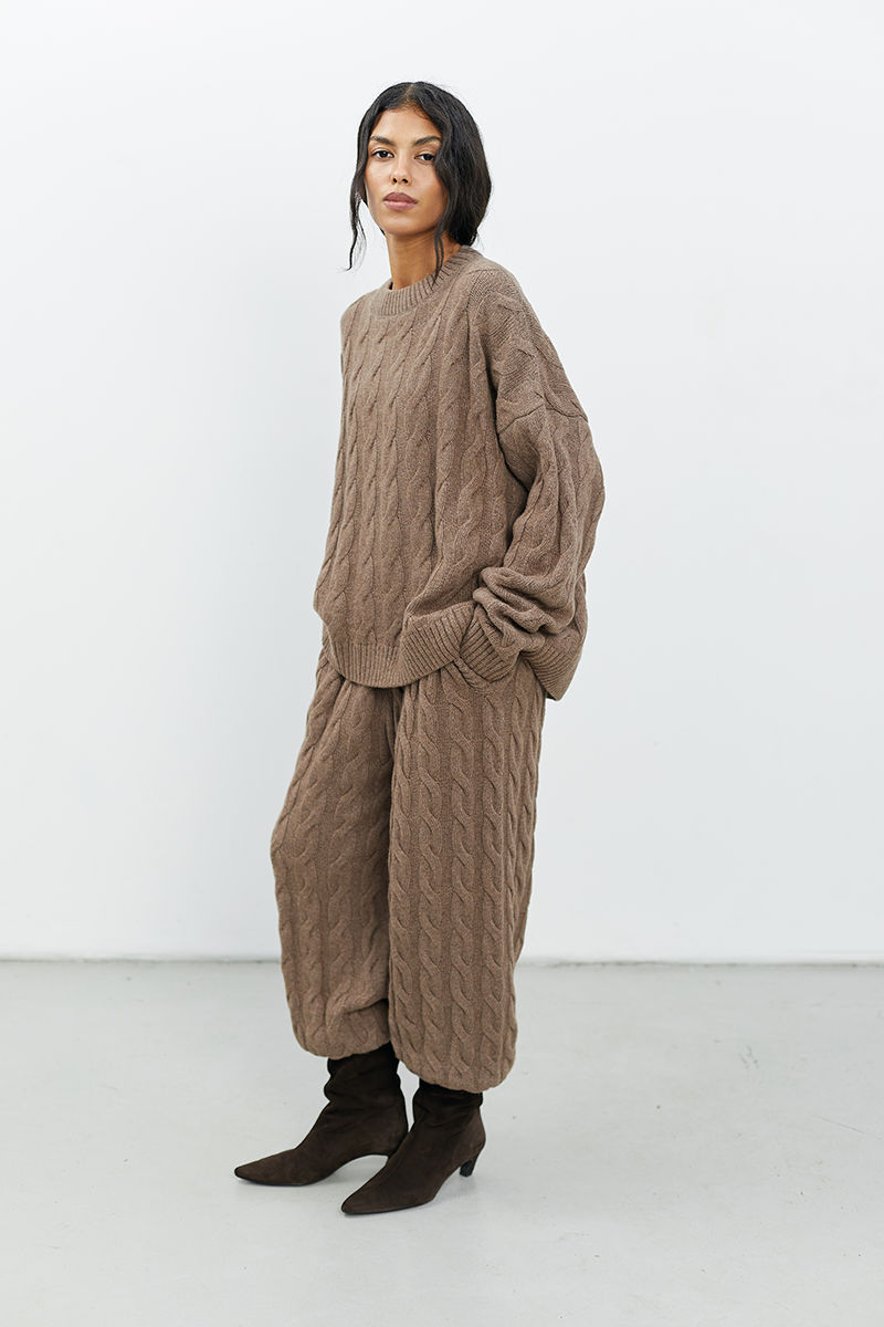 Светр поєднав у собі цікаву в’язку з візерунком коси, актуальний крій, зручність та практичність.
