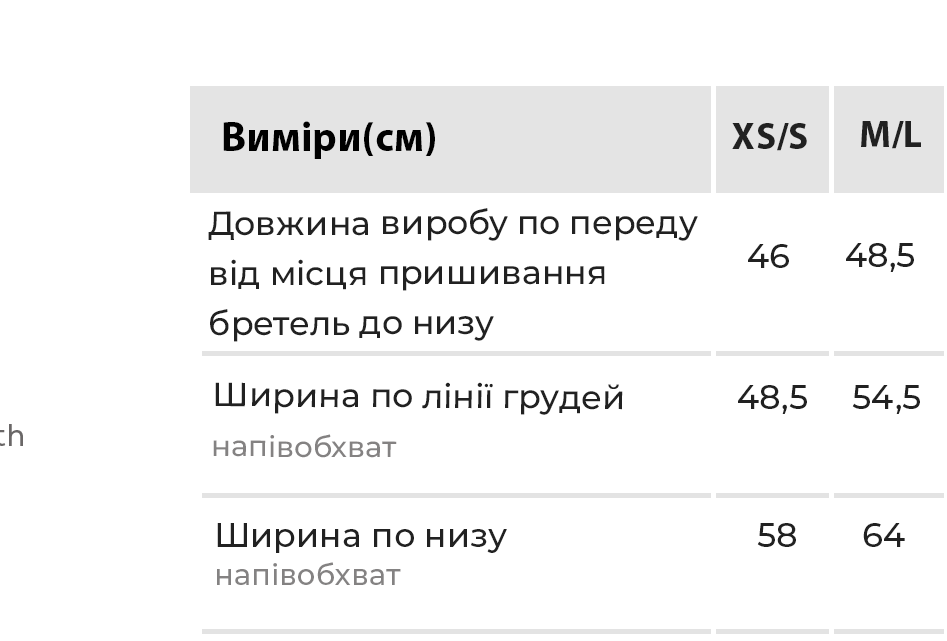 Таблиця розмірів